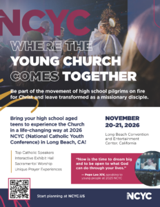 Prepare for an inspiring and empowering weekend at 2026 NCYC: November 20–21 in Long Beach, CA! This two-day gathering brings Catholic teens and their adult leaders together to pray, grow, and celebrate the beauty of our shared faith. Don’t miss this incredible opportunity to encounter Christ, build community, and be strengthened for mission alongside youth from across the nation.